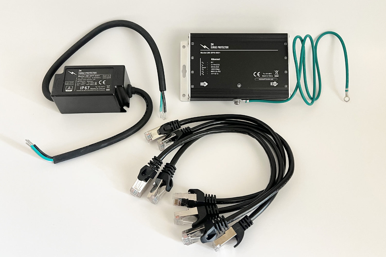 Gas pump network surge protector + power line surge protector + 4 RJ45 connector wires